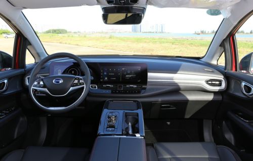 广汽Aion V的内饰传承了Aion家族化设计语言,双联屏设计科技感较强,车内同样应用了大量软质材料,有着不错的品质感。但广汽Aion V双联屏较为突兀,并未融入中控,同时,两幅式的方向盘也不符合用户的日常使用习惯。