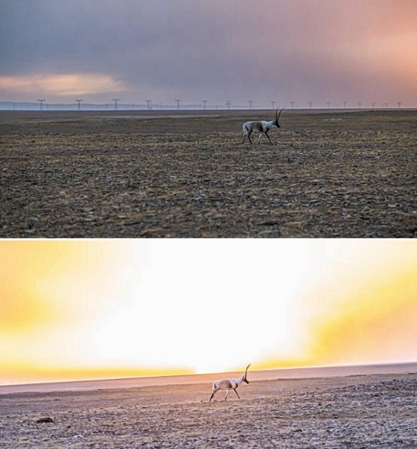 在109国道上行驶,两侧是可可西里自然保护区外围的缓冲区,在公路的边缘是可以停车观赏休息的。如果运气好的话是可以看到藏羚羊这样的珍稀野生动物,而我们的运气显然还不错,看到并拍下了藏羚羊的画面。