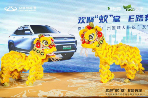 中午12点,在欣赏完当地特殊的舞狮表演后,“欢聚‘蚁’堂 e路有你”奇瑞新能源广州区域大蚂蚁车友答谢宴活动正式开启。