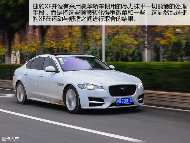 在起伏与颠簸更明显的路面状况下,捷豹XF也可以比较从容的处理,之所以使用“比较”二字,是因为捷豹XF并没有采用豪华轿车惯用的尽力抹平一切颠簸的处理手段,而是将这些颠簸转化得稍微柔和一些,这显然也是捷豹XF在运动与舒适之间进行的取舍。