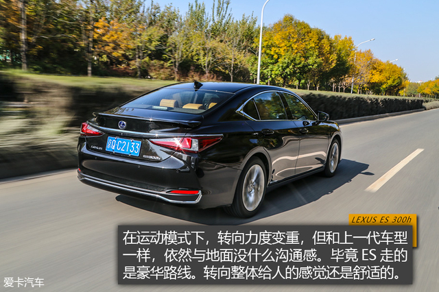 由于基于TNGA架构打造,新ES 300h相比上一代车型悬挂更低了。虽然软硬度没有太大变化,但底盘响应更好了,经过颠簸时,相比上一代车型更为干脆,明显向操控性、运动性能转变了,但对比欧美系的对手们,它依然谈不上更运动,悬挂依然算是更舒适的。
