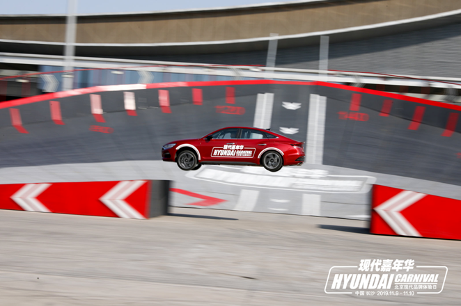 更刺激的还在后面,北京现代高性能车系的引擎轰鸣起来,在车手高超技艺的操控下,车辆瞬间移动至高运转速度,随即一个180°转向,瞬时超过地球自重引力的G值直接将你的肾上腺素甩出,刺激的乘坐体验,让你的脑垂体不断分泌多巴胺,对于北京现代产品的驾驶体验欲望,由内而外的迸发出来。