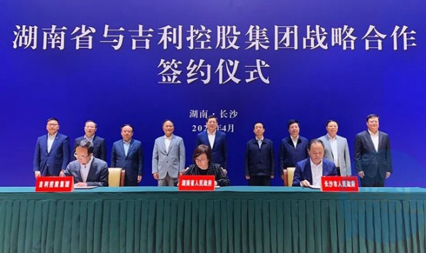 4月27日,吉利控股集团与湖南省人民政府、长沙市人民政府在长沙正式签署战略合作协议,托管湖南省省属国有企业长丰集团有限责任公司下属湖南猎豹汽车股份有限公司长沙工厂,从事新能源汽车整车的生产和销售,共同推动湖南汽车制造业高质量发展。