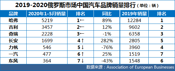 短短一年过去,依托图拉工厂的产能与市场效应,长城汽车在俄罗斯市场交出了出色的成绩。继2019年实现同比增长282.3%,登顶俄罗斯市场中国汽车品牌销量榜首之后,2020年1-5月,长城汽车哈弗品牌在俄罗斯市场的整车销量达到5219辆,同比增长89%,继续稳居中国品牌销量榜首。更重要的是,长城汽车的市占率从去年同期增长近63.6%